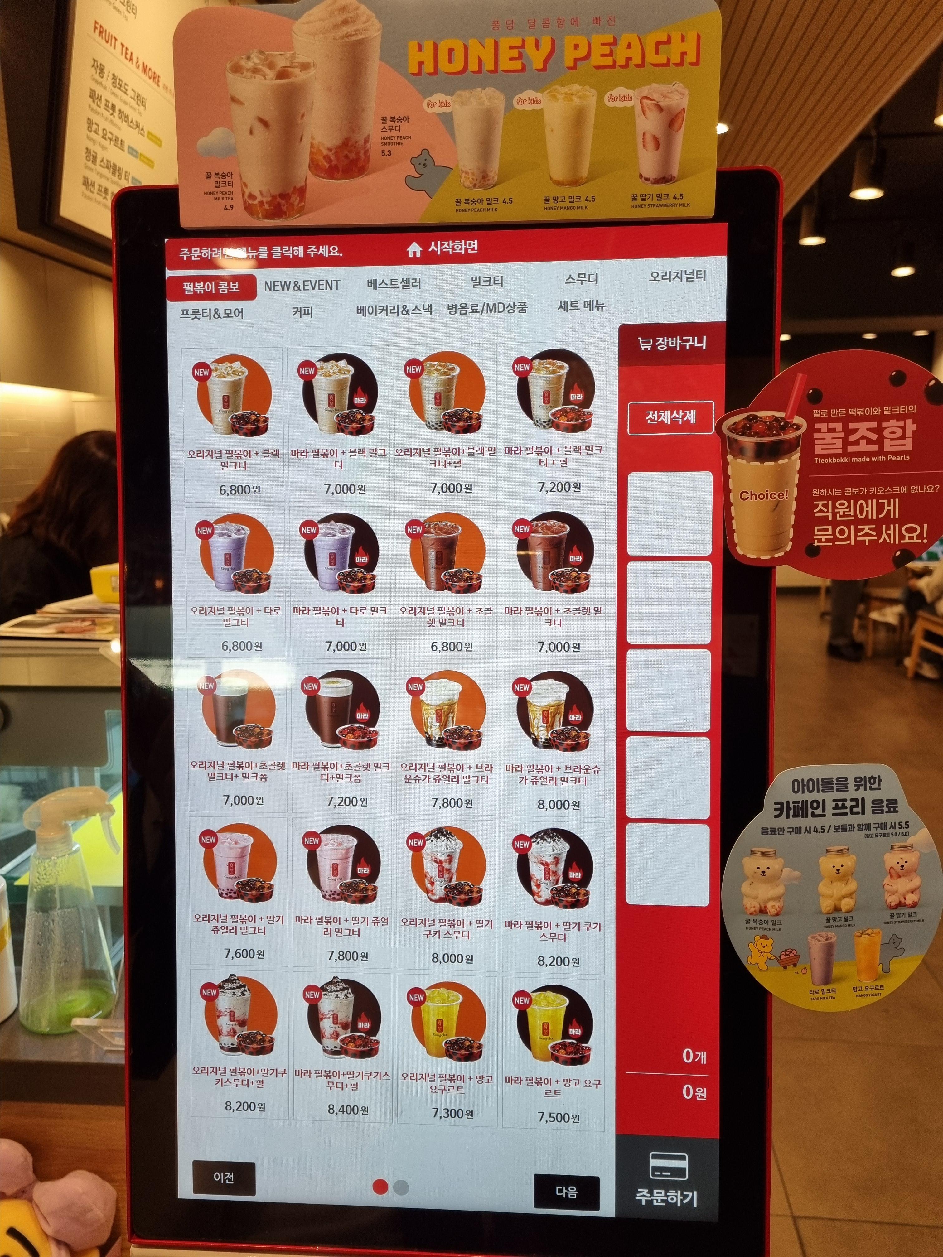 토핑이 있는 메뉴는 키오스크 그림에 펄이 들어있다!