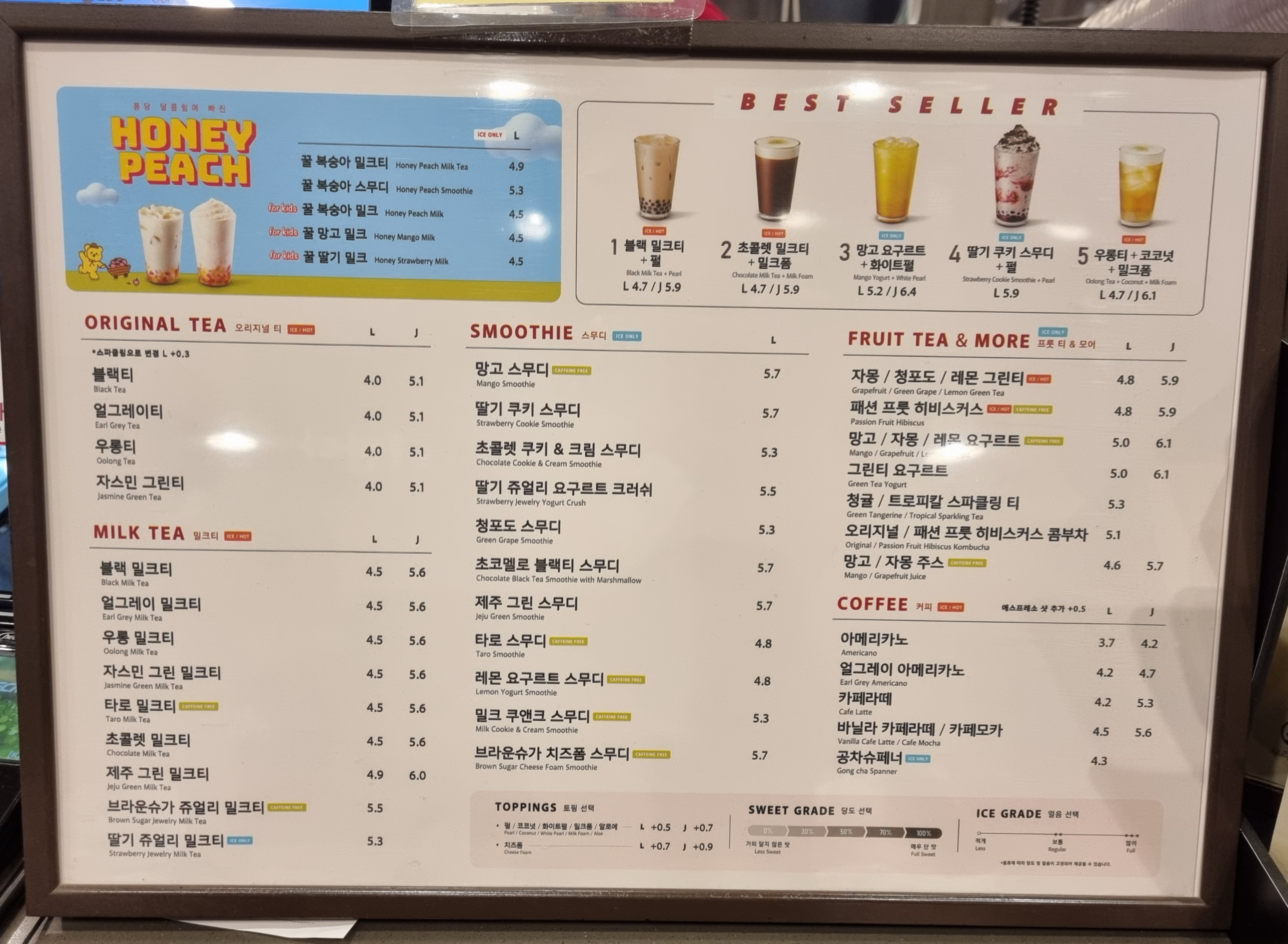 공차 최근 매장 메뉴판 및 신메뉴 올려드리니 아래 사진을 참고하세요~