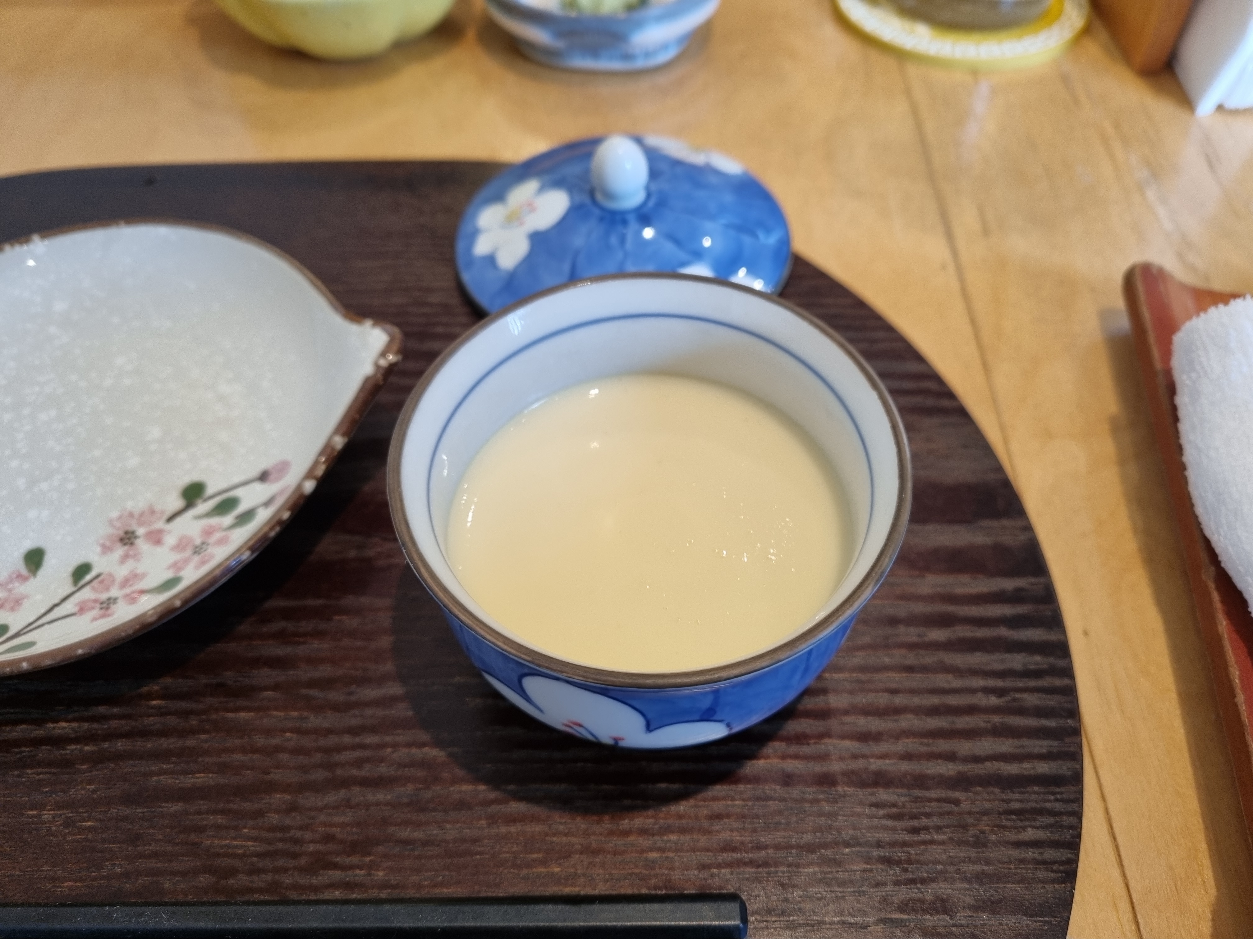 테이블에 반찬과 와사비,