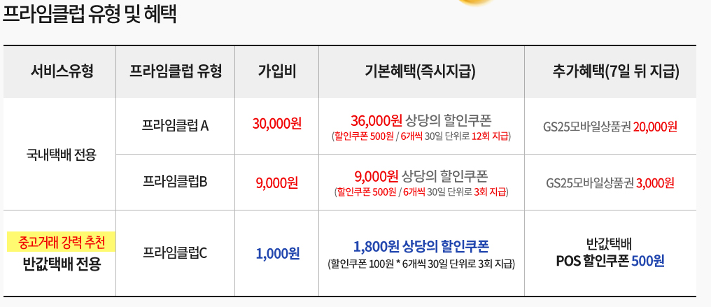 GS25편의점 택배에서만 프라임 클럽이라는 구독 혜택을 지급하고 있습니다.