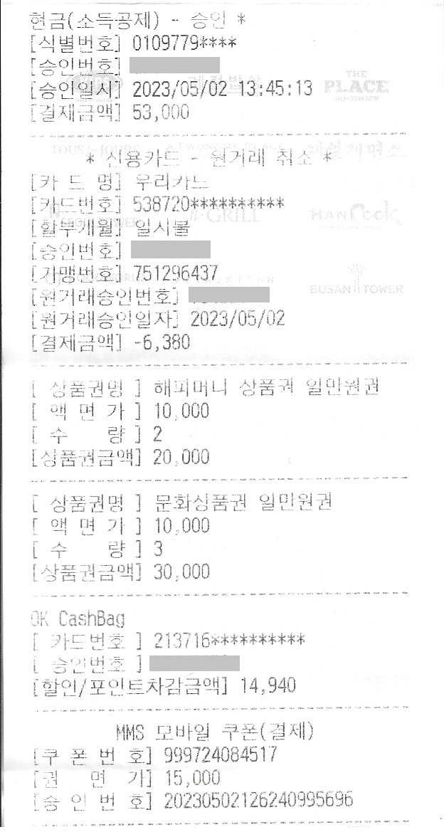 영수증 꼭 받으셔서 결제 금액 잘 확인해야 되네요.