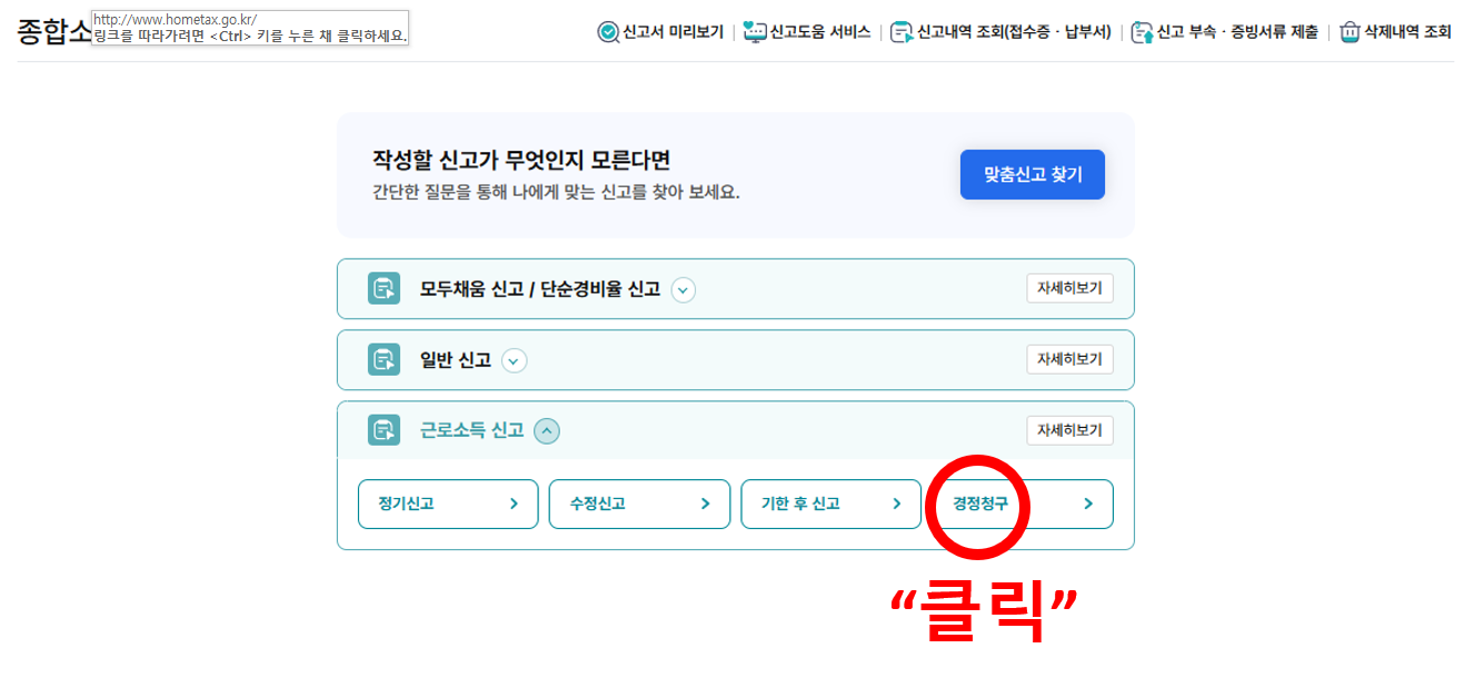 🔗 경정청구 방법 : 신고한 연도 5월 31일 까지 종합소득 과세표준 확정신고 가능