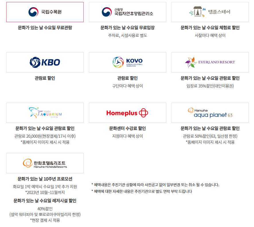 매달 마지막 수요일과 그 주간에 문화시설 할인 또는 무료관람, 야간개방 등 다양한 문화 혜택 제공, 전국문화지도, 영상과 SNS를 통한 문날소식 제공