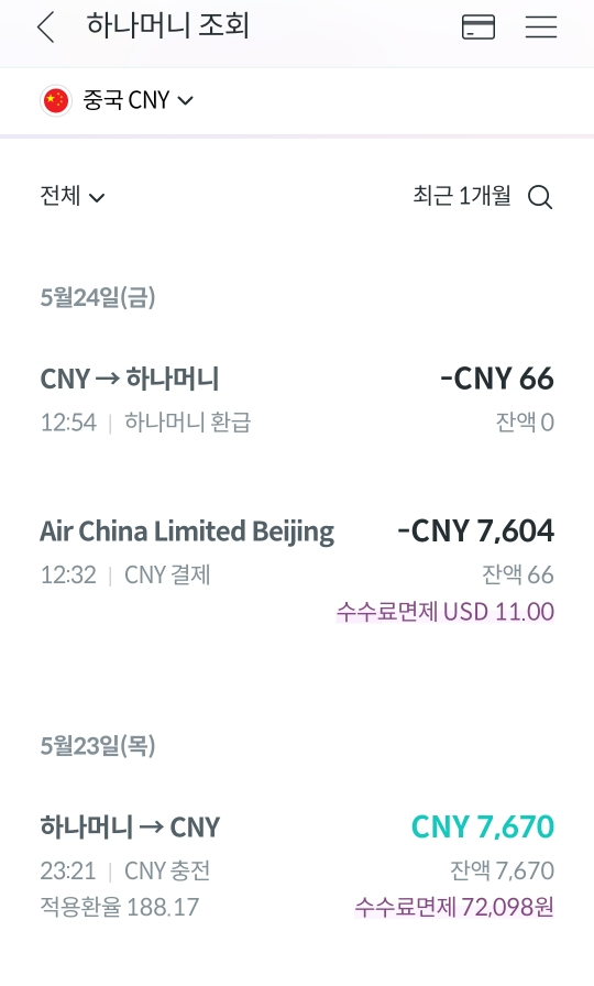 환전 수수료 및 해외결제 수수료가 절약된 거 보니까
