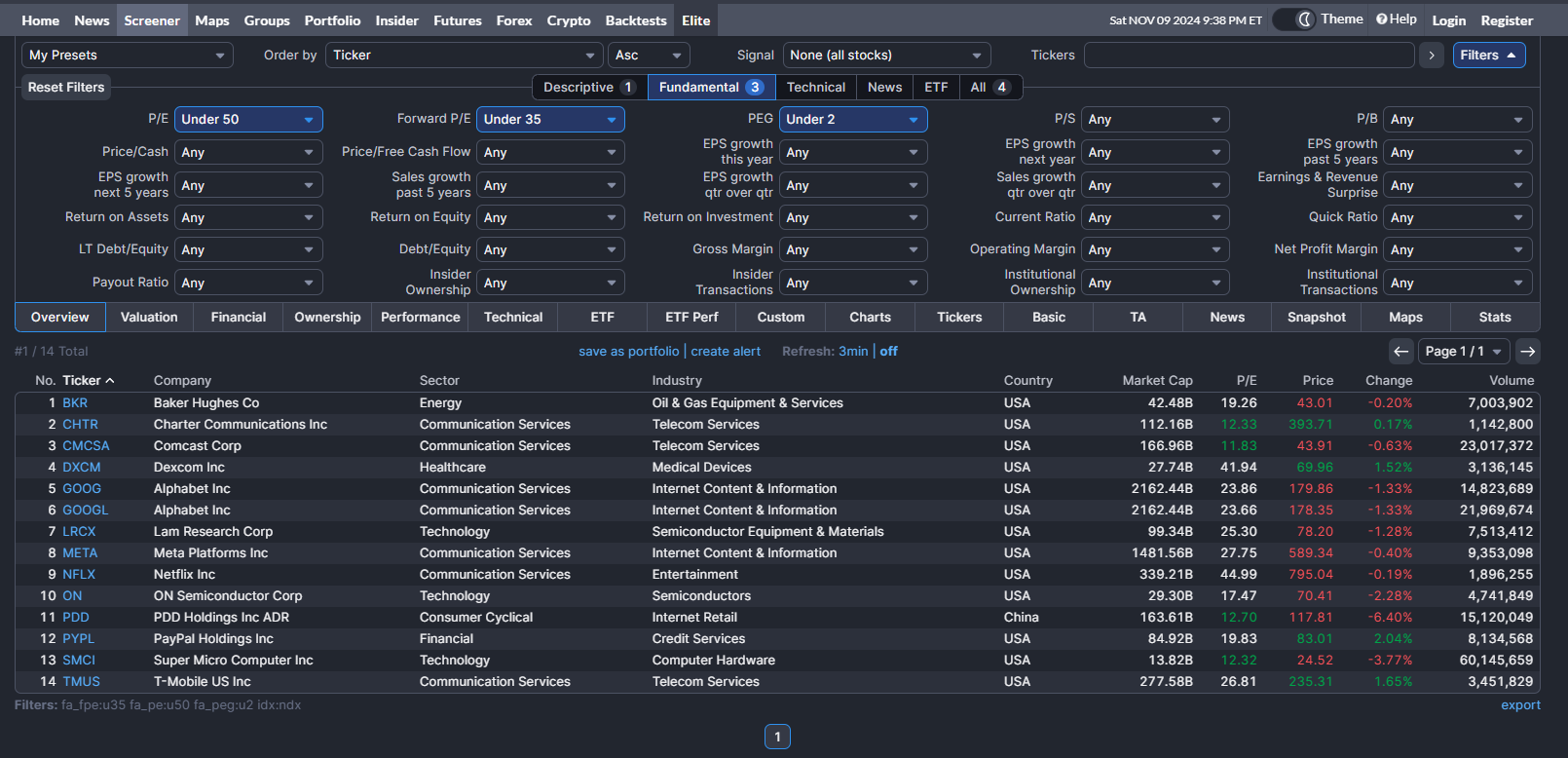 Valuation, Growth, Ratings, Peers 등 잘 활용하면