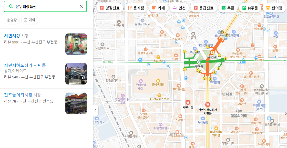 2. 검색창에 "온누리상품권", "온누리상품권 가맹점" "온누리상품권 사용 가능" 입력