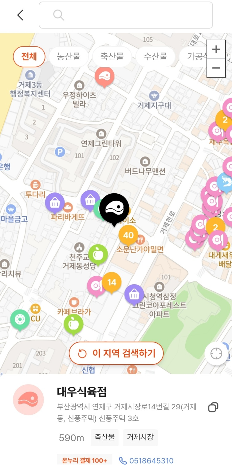 ❌ 단점으로는 시장단위로만 검색만 가능하고 매장은 거의 확인이 어렵습니다.