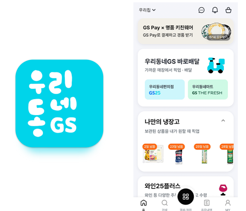앱을 더 잘 이해하고 사용하면 유용하게 사용할 수 있습니다. 우선 상시 운영하는 이벤트를 함께 이용하면 유용합니다. 나만의냉장고 출석체크 이벤트, 매월 초 특별 할인행사, 스탬프 경품이벤트 등 이벤트를 매월 정기적으로 운영하고 있습니다. 나만의 냉장고 출석체크 이벤트는 매월 25일 이상 앱에 방문하여 출석체크를 하면 매월 특정상품을 무료로 증정하는 이벤트를 하고 있습니다. 출석체크를 통해 제공되는 상품은 과자, 캔디, 커피 등 다양한 먹거리로 지급되며 하루 1회 앱 잠깐의 접속 후 클릭만으로도 출석체크를 할 수 있으니 반드시 참여하여 받는 것을 추천드립니다. 매월 초반부인 1~10일까지 정기적으로 특별 할인행사를 운영하고 있습니다. 월별로 상품의 구성은 달라지나 1+1, 2+1 행사상품들을 저렴한 가격에 만나 볼 수 있으니 확인하고 방문하기 바랍니다. 스탬프 경품이벤트는 상시 이벤트는 아니지만 특정상품을 해당 월에 연속적으로 구매하면 스탬프가 쌓여 특별한 캐릭터 상품이나 생활용품을 증정 또는 대폭 할인 판매 하는 행사입니다. 원하는 제품이 있을지도 모르니 미리 확인하시고 이용하시기 바랍니다. 결제서비스를 이용할 때는 앱 하단 중앙에 표시되어 있는 결제 버튼을 이용하시면 되는데 포인트나 통신사할인 등 병행하여 할인받고 싶으신 경우 미리 하단에 있는 통신사 할인, 브랜드별 쿠폰, 우리동네GS 클럽, 더팝리워즈, 포인트, 현금영수증을 체크하고 QR코드를 생성하여 결제하면 한번에 결제 가능합니다. GS pay 결제기능을 이용하려면 미리 국내계좌를 등록하고 사용해야 합니다. 우리동네마트 또는 우리동네편의점 사전예약 서비스에서는 가장 처음 이용할때 1만원 상당의 할인혜택을 주고 있으니 필요한 식품들을 구매하실때 한번 이용해보셔서 혜택을 받으시기 바랍니다. 이 사전예약서비스는 배달수령시에는 배달료가 일부 추가되고 픽업서비스도 이용할 수 있으니 참고하시기 바랍니다.그 외에도 다양한 할인행사, 전단지를 이용하여 참여할 수 있으니 메뉴 상단의 좌우스크롤 창을 확인하시어 필요한 상품을 싸게 구매하시기 바랍니다.