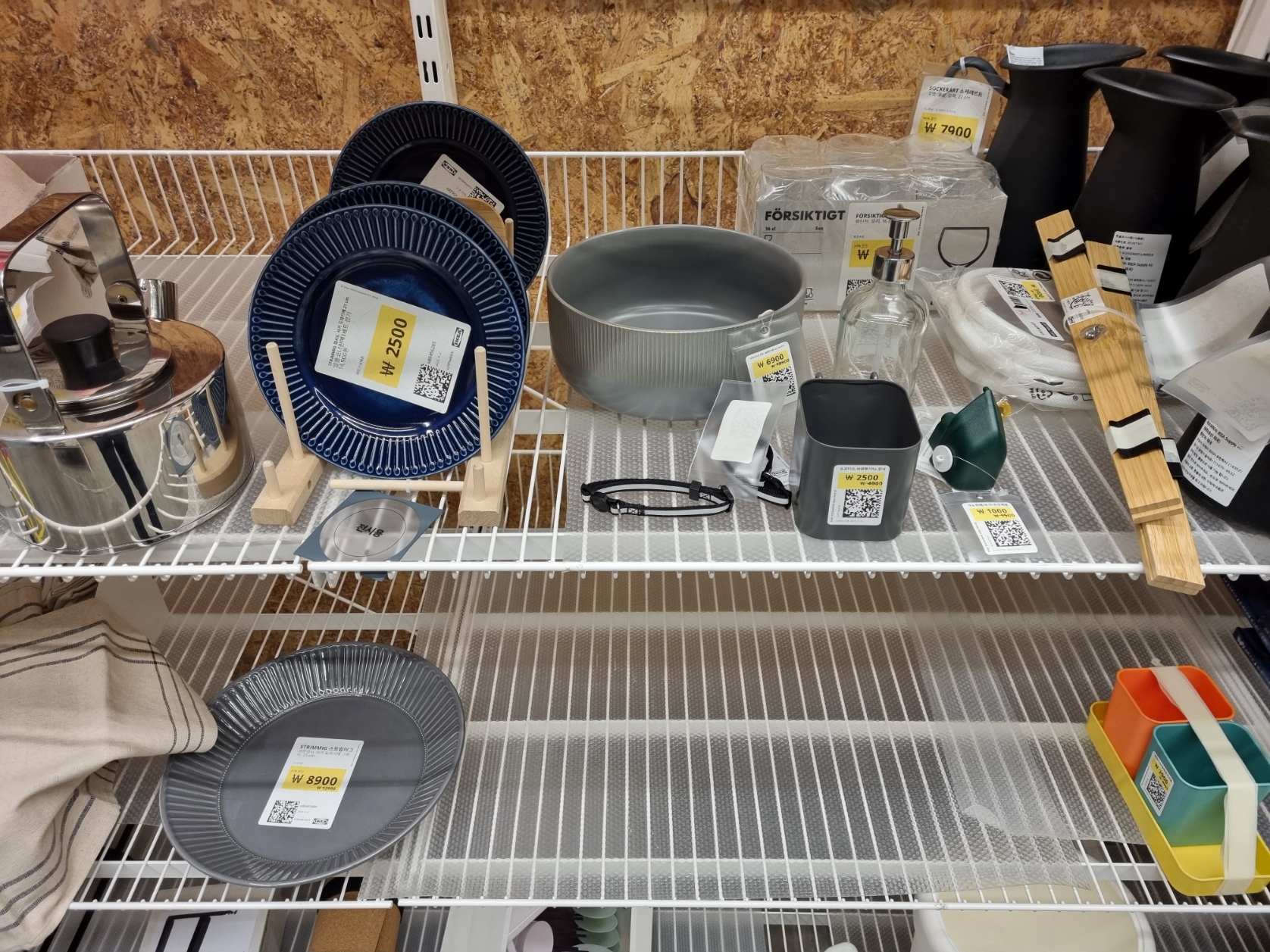 아래 사진에는 당일날 있던 제품들입니다. 저는 마음에 들었던 부분은 저런 작고 이쁜 컵같은 부분도 이렇게 사소한 하자로 싸게 구매할 수 있다는게 너무 좋았어요! 역시 이케아는 소소한 소품들로 카트가득 채우는 매력이 있죠.