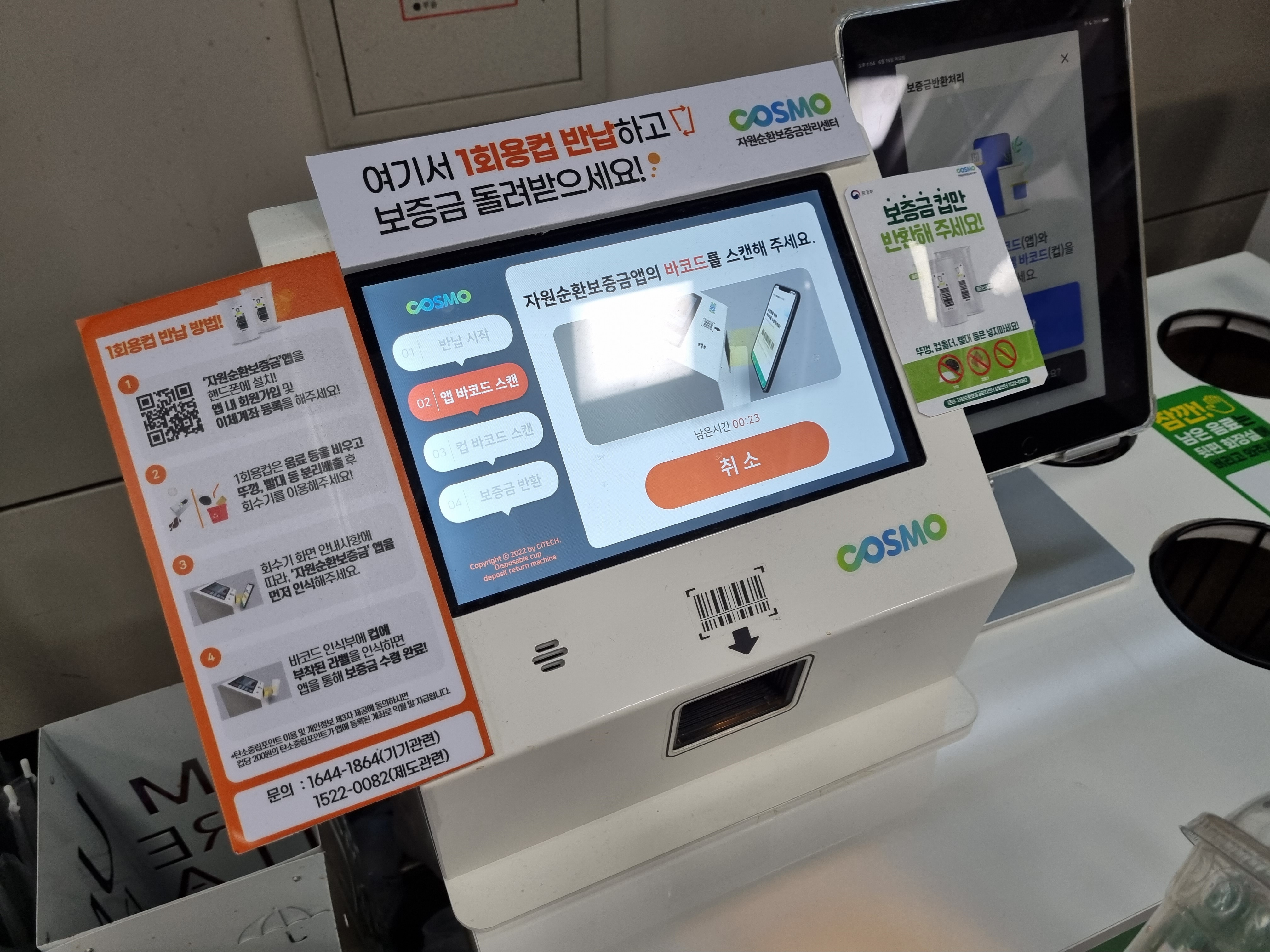 앱바코드 찍고 컵 찍고 옆에 넣으면 됩니다!
