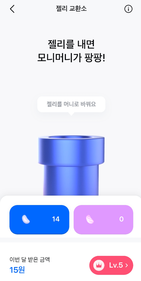 젤리교환소에서는 레벨이라는 개념이 있는데 레벨1은 삼성금융사 비회원이며 젤리 교환시 리워드가 1.0배만 적용됩니다. 레벨2가 되려면 삼성계열금융사 1곳에 가입해야하고 가입 후 1.1배의 젤리 리워드를 받을 수 있습니다. 삼성금융사 2곳에 가입시 레벨3이 되며 젤리 리워드 머니는 1.2배 받을 수 있습니다. 삼성 금융사 3곳에 가입시에는 레벨4가 되며 젤리 교환 리워드가 1.3배가 되고 마지막으로 삼성 금융사 4곳 모두에 가입하게 되면 레벨5가 되어 젤리 교환 리워드 머니가 1.5배가 되는 큰 혜택을 줍니다. 모든 계열사에 가입되어 있는 사람에게는 매우 유리한 혜택이 될 수 있습니다.