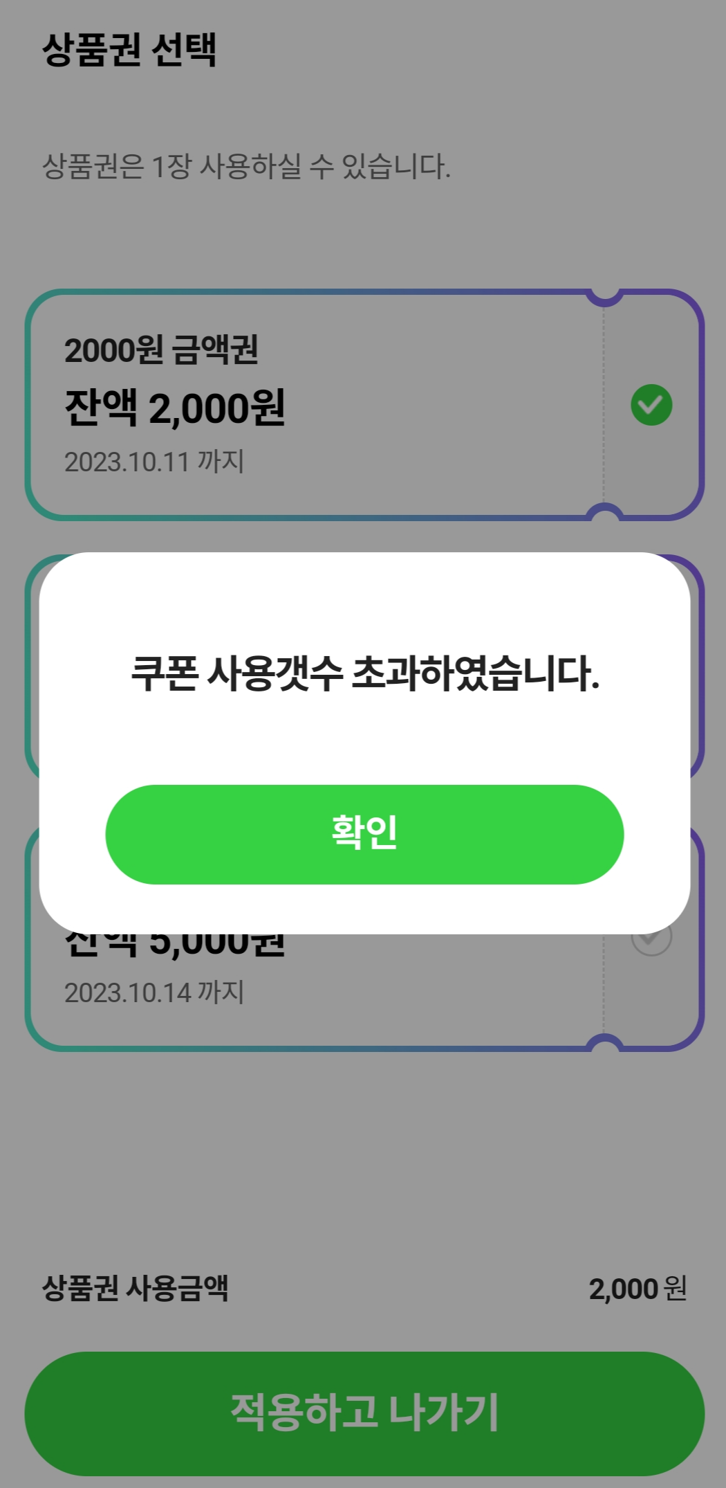 쿠폰금액을 넘게 골라서