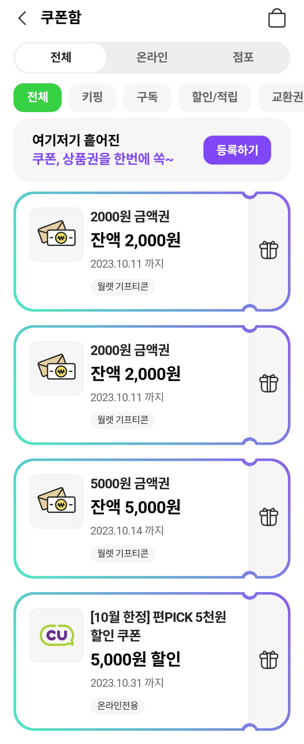 앱에 금액권 한번 등록하고 나면