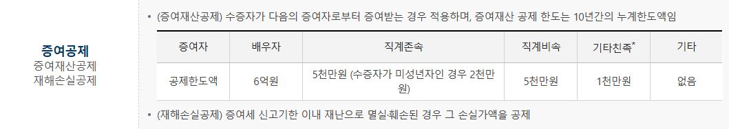 부모(직계존속), 자녀(직계비속)에게 5천만원까지